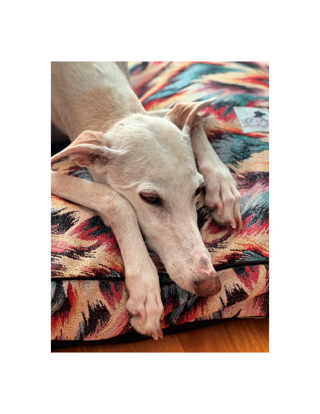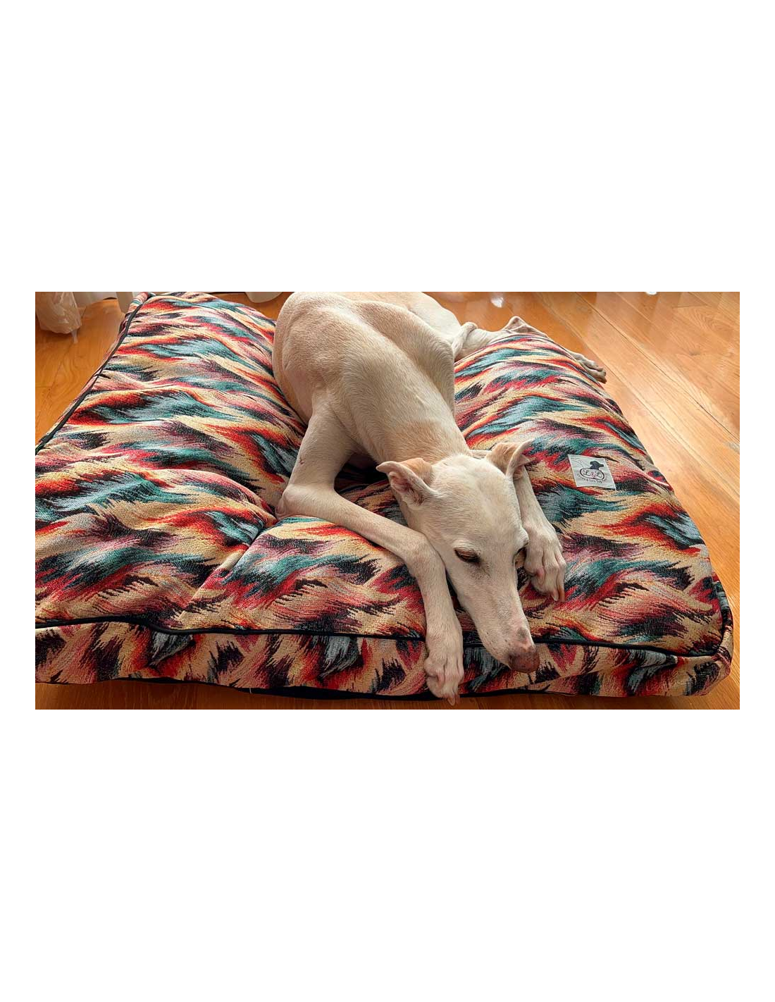 Cama para galgo en loneta fuerte, muy resistente al mullido que realizan los galgos antes de acostarse.