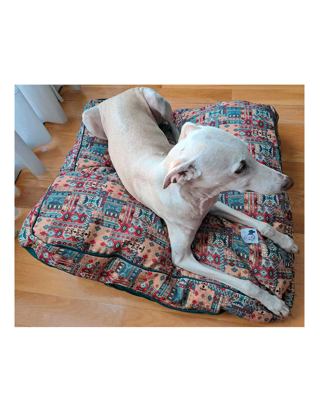 Cama para galgo en loneta fuerte, muy resistente al mullido que realizan los galgos antes de acostarse.