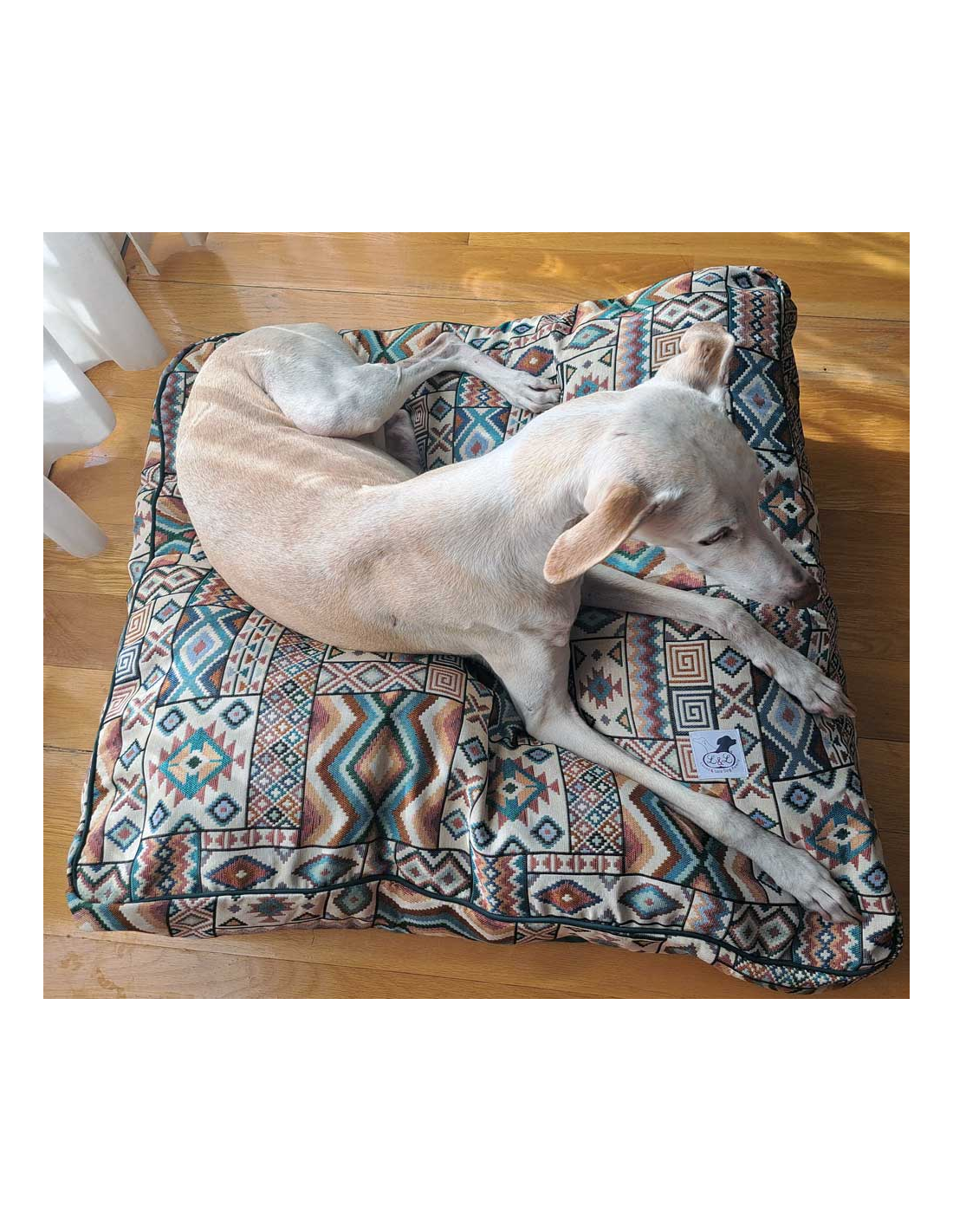 Cama para galgo en loneta fuerte, muy resistente al mullido que realizan los galgos antes de acostarse.