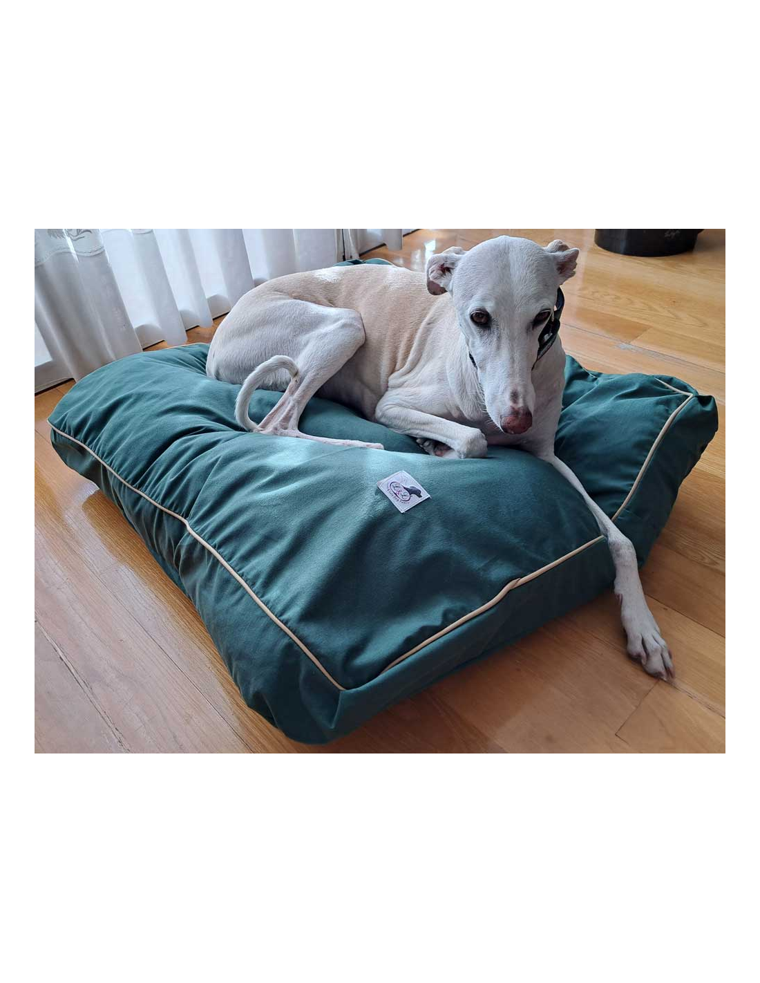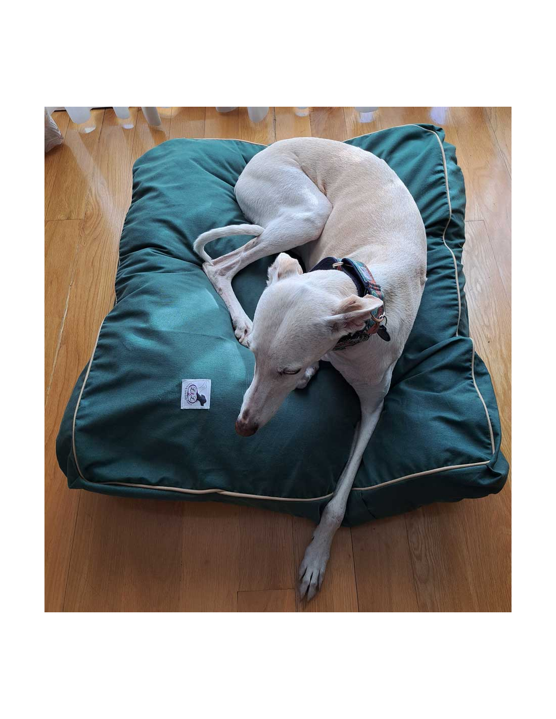 Cama para galgo en loneta fuerte, muy resistente al mullido que realizan los galgos antes de acostarse.