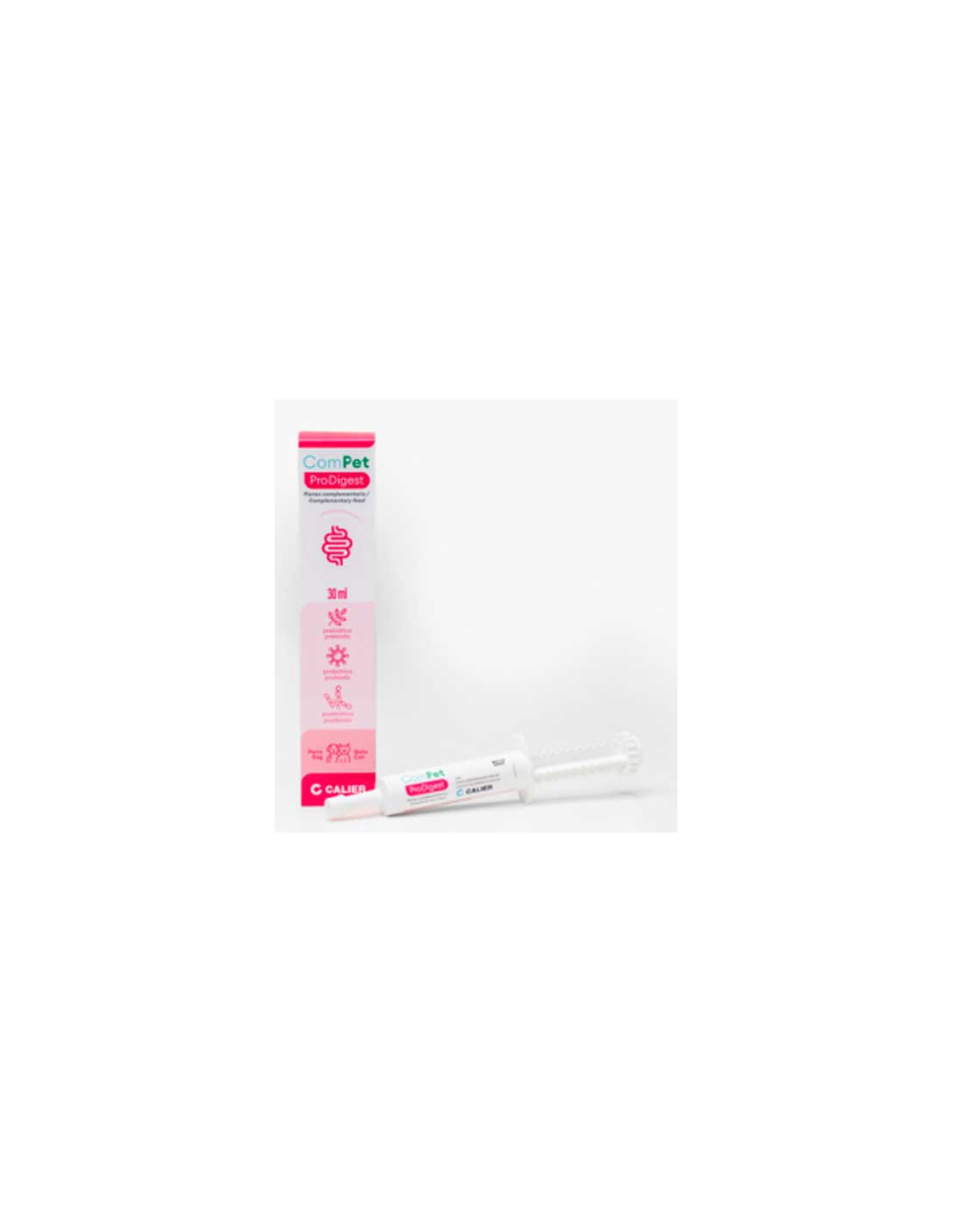 Alimento complementario en forma de pasta presentado en una jeringa de 30 ml o 60 ml con dos fases para apoyar la función intestinal de perros y gatos.
