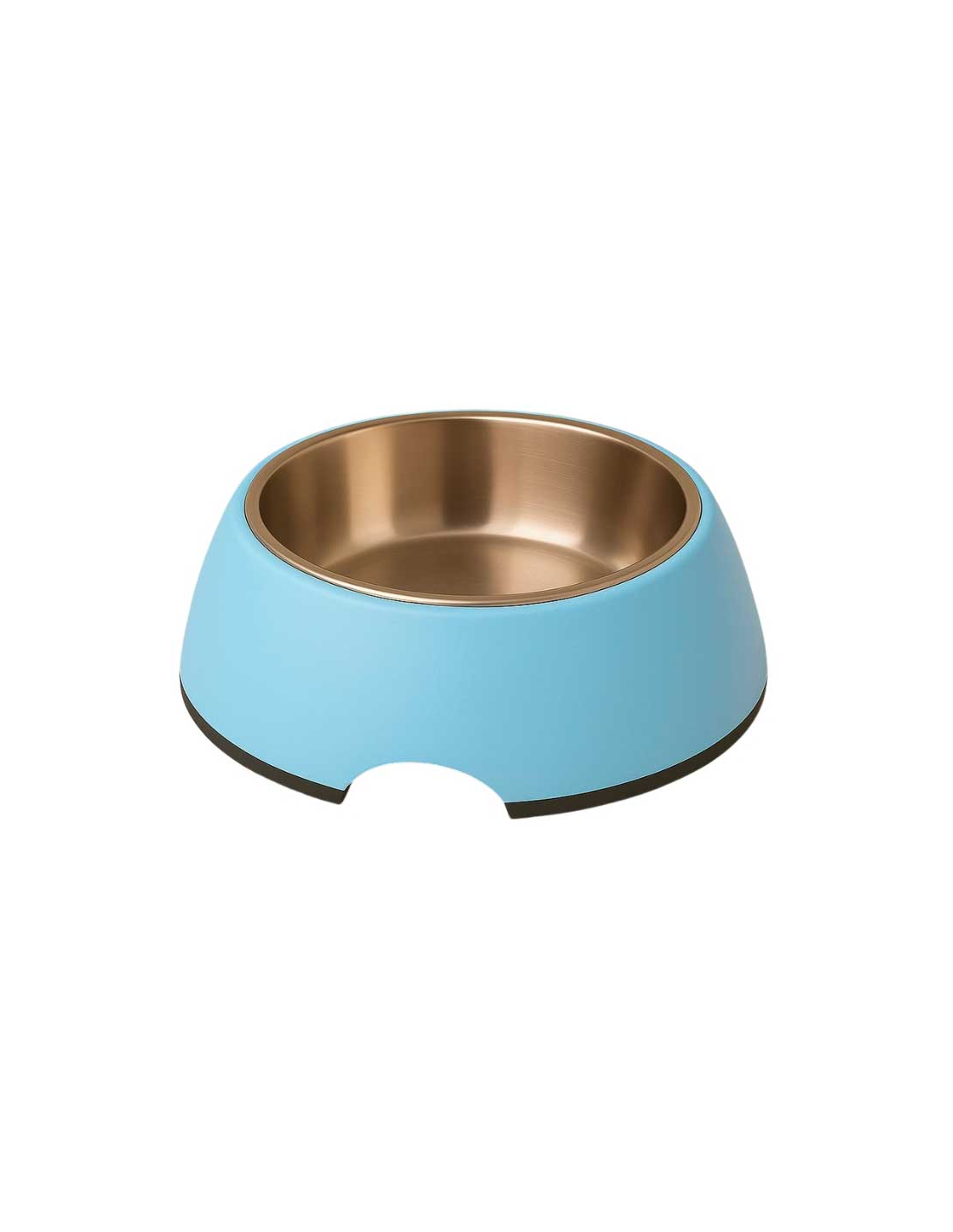Elegante comedero de melamina azul con bol interior de acero inoxidable extraíble para facilitar la limpieza.
